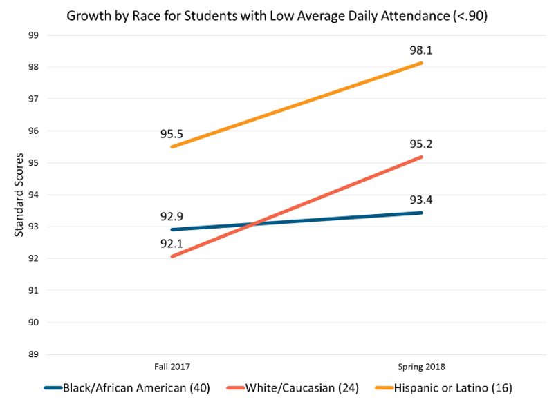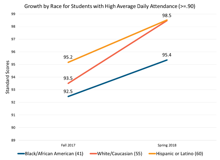 This effect was particularly strong for Black children. On average, Black children with low ADA only grew 0.5 standard scores while Black children with high ADA grew an average of 2.9 standard scores.